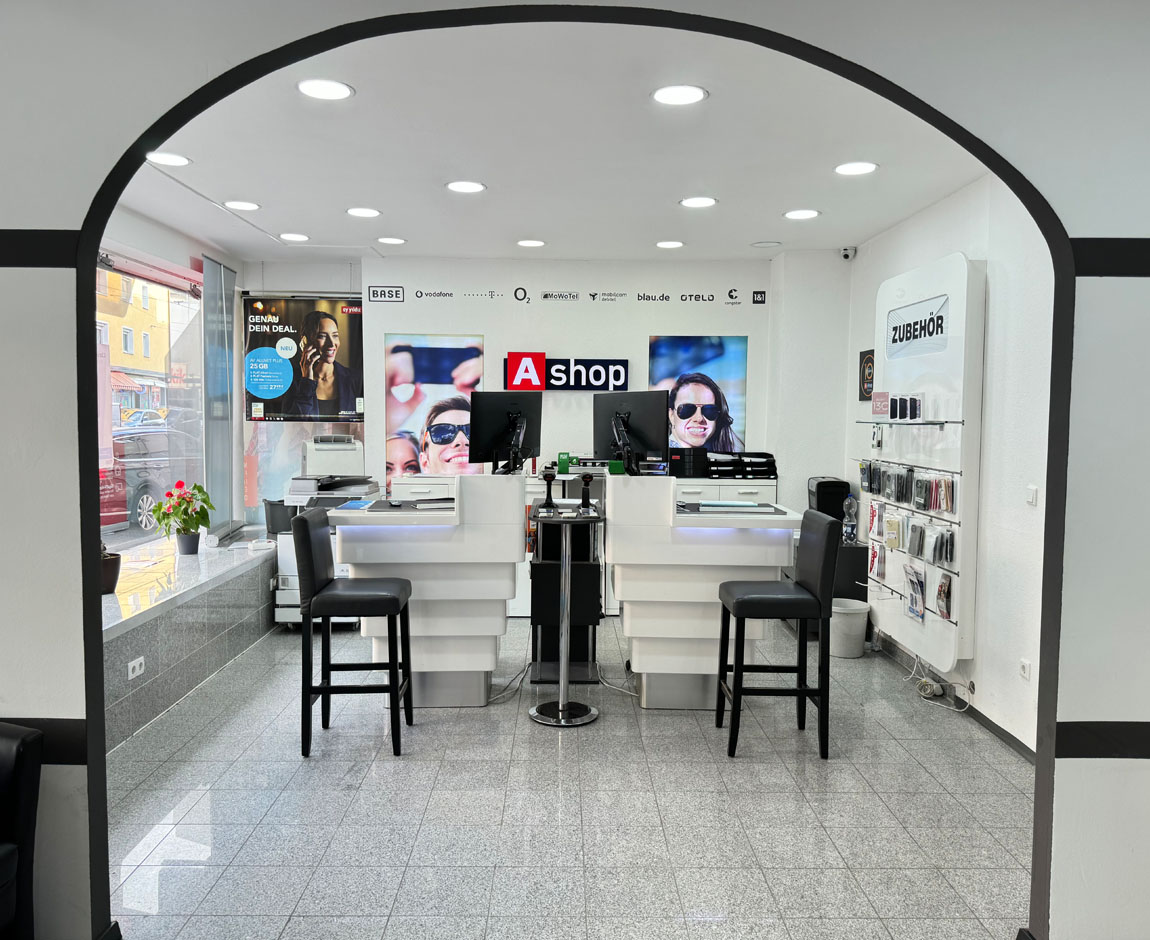 Herzlich willkommen im Ashop Nürnberg. Bei uns findest Du alle Leistungen rund um Mobilfunk und Festnetz! Unser geschultes Team freut sich auf Deinen Besuch und garantiert persönliche und unabhängige Beratung – gemeinsam finden wir das optimale Angebot für Deine persönlichen Bedürfnisse!